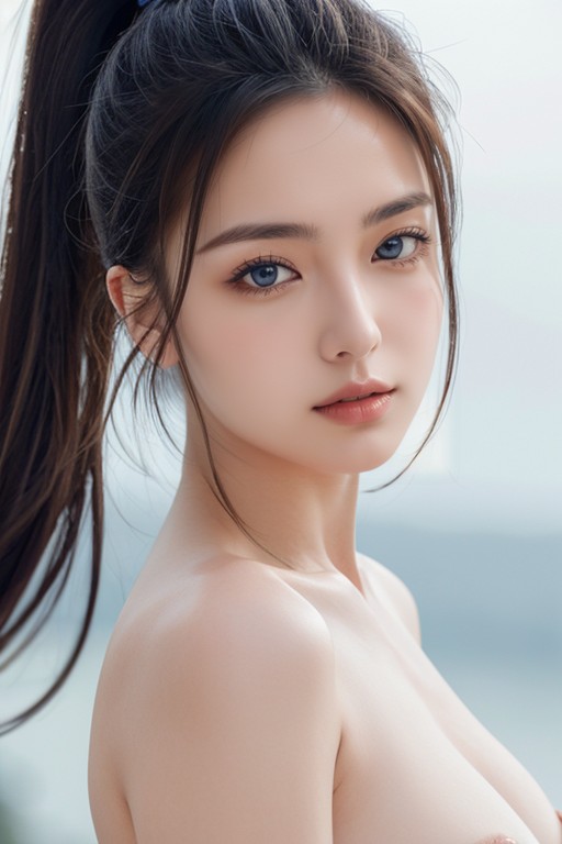 Naked, Blue Eyes, Ponytail Shemale AI Porn