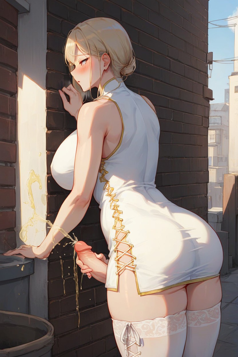 White Cheongsam, Alleyway, Masturbation Shemale AI Porn